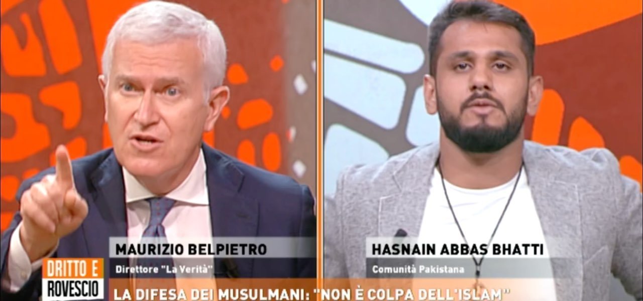 «Io sono stato citato in giudizio da questi signori perché mi vogliono impedire di dire che quel terrorismo è islamico e che si uccide in nome dell’Islam. Hanno provato a impedirmelo, a imbavagliarmi, ma non ci siete riusciti», il durissimo sfogo di Maurizio Belpietro a ‘Dritto e Rovescio’. Ma per il direttore de La Verità la religione islamica c’entra e per una ragione semplice: «Mette la donna in una posizione subalterna rispetto all’uomo. C’è scritto sul Corano e viene applicato dalle comunità islamiche». Inoltre, Belpietro ha ricordato che a differenza della Bibbia, i cui passaggi più cruenti non vengono applicati, «il Corano viene applicato in maniera cruenta da alcuni gruppi islamici». Ha poi aggiunto che la «sottomissione della donna è documentata, al punto che l’imam della più grande moschea egiziana fece un suo intervento dicendo che era giusto battere le donne. E poi di cosa vi stupite?». Dal canto suo Hasnain Abbas Bhatti si è detto non sorpreso dal fatto che Belpietro cita sempre l’Islam: «Ho letto l’articolo dove era scritto “islamici bastardi”». Allora il giornalista ha chiarito di ricordare bene la vicenda: «Fui assolto perché il fatto non costituisce reato».