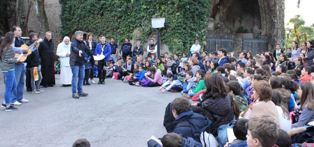 Arriva dunque il momento. Attraversiamo silenziosamente i Giardini vaticani e ci disponiamo vicino alla grotta di Lourdes, la cappella scavata nella roccia dove Papa Benedetto andava a pregare. Gli occhi dei ragazzi stupiti e desiderosi, puntati su quella figura bianca che si avvicina piano, appoggiata ad un supporto per sostenere la camminata incerta. Lo sguardo no, quello è sempre intenso e profondo. Lo saluto, mi fermo a chiacchierare un po’ con lui. Mi colpisce la passione e l’interesse con cui chiede di questi ragazzi: mi domanda della loro educazione, della proposta che facciamo loro. Vuole sapere della situazione educativa generale e che cosa ne penso. Mi stupisce profondamente trovare, in un uomo della sua statura, questo desiderio incredibile di imparare da tutti, anche dall’ultimo prete qual ero e sono io.