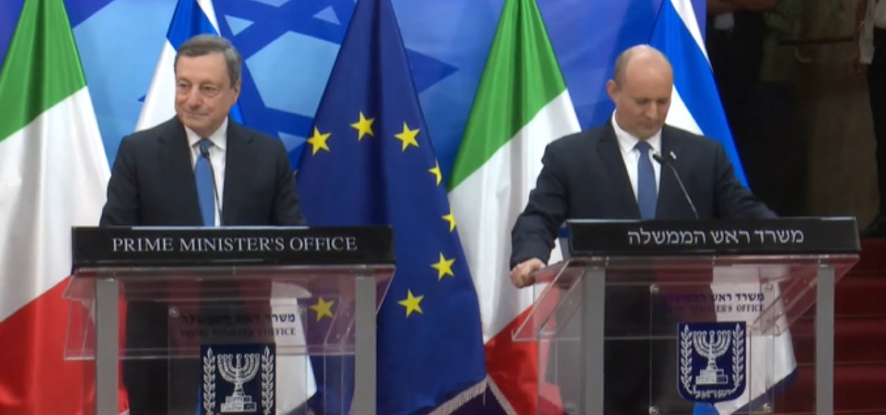 Il primo ministro israeliano Naftali Bennett e il presidente del Consiglio italiano Mario Draghi hanno parlato nell’ambito di una conferenza stampa congiunta, andata in scena in occasione della visita del nostro premier in landa mediorientale. In particolare, Bennett ha asserito: “Israele potrà aiutare l’Europa e anche l’Italia producendo gas naturale e queste sono ottime notizie per il mondo. Abbiamo parlato della collaborazione utile a raggiungere questo obiettivo. Insieme siamo più forti”.