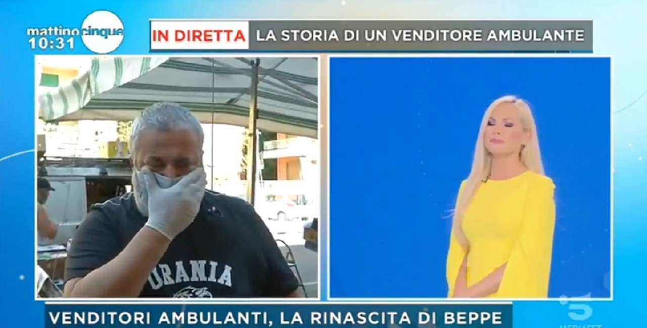Sono tante le storie che ogni giorno Federica Panicucci cerca di raccontare a Mattino5 e finalmente per qualcuno dei suoi protagonisti è arrivato il lieto fine, lui è Beppe, simbolo dei venditori ambulanti che in questi mesi hanno patito la fame, letteralmente. Gli aiuti tardano ad arrivare così come le aperture, e questo ha messo in ginocchio un settore e, in particolare, quest’uomo, padre di famiglia, che vive con quello che vende al mercato. Dopo gli appelli dei giorni scorsi in cui ha rivelato di vivere con 5 euro al giorno andando a vendere qualcosa a porta a porta, oggi Beppe torna su Canale5 per raccontare la sua riapertura e l’emozione che ha provato quando è salito sul suo furgone e ha messo in moto dopo tre mesi passati a secco: “E’ stata un’emozione indescrivibile, io ti ringrazio, la mia vita è cambiata, tu sei la numero uno”.