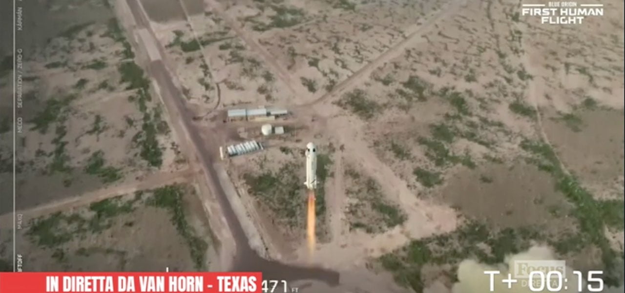 Come per Virgin Galactic, la partenza della capsula New Shepard di Blue Origin è slittata di qualche minuto rispetto all’orario previsto. L’orologio del conto alla rovescia è apparso fermo, un ritardo forse legato a questioni meteorologiche o tecniche. Di fatto, la partenza è avvenuta 10 minuti dopo. Il portellone della capsula New Shepard si è chiuso con il team operativo di Blue Origin all’interno. Il sistema di emergenza della capsula è stato attivato, nel caso in cui la capsula dovesse aver bisogno di usare il suo motore di “fuga” e staccarsi dal razzo. E il viaggio è cominciato. Il fondatore Jeff Bezos ha pubblicato un video su Instagram in cui esprime delle parole di incoraggiamento: «I cosmonauti russi hanno un brindisi speciale per occasioni come questa prima di un volo. Ad un atterraggio morbido».