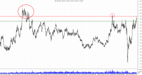 Sulle commodities è opportuno riportare l’avvenuta rivalutazione dell’argento che, dopo aver violato la parte superiore del trading range (18,630), ha incrementato il proprio allungo fino a 19,44 ovvero i massimi dell’agosto scorso.