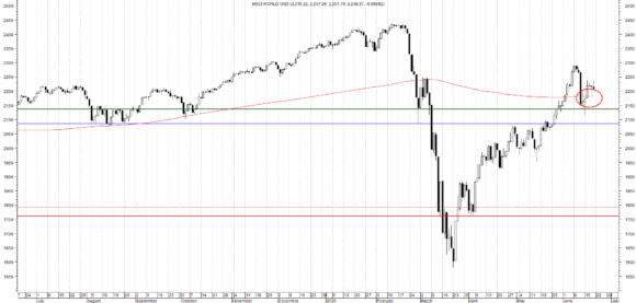 Osservando quanto accaduto sul mercato azionario, sull’indice MSCI World Usd (rif. benchmark equity) è facilmente individuabile la vicinanza alla media mobile a 200 giorni (area 2.182,69 punti) che, qualora fosse nuovamente violata questa volta potrebbe contribuire a una fase di accentuato ribasso. La fragilità dell’impostazione grafica sottostante all’asset class azionaria è riscontrabile anche sul fronte algoritmico con l’insieme dei leading indicators ancora in sell signal nonostante i valori prossimi alla neutralità dalla quale provengono. Di certo, un livello di prezzo inferiore ai 2.196,02, punti agevolerebbe una prima fase di inversione anche sui principali lagging indicators attualmente in territorio neutral. Decisamente positivo il superamento della resistenza dinamica a 2.238 con conseguente e ulteriore rialzo esteso oltre i massimi mensili.