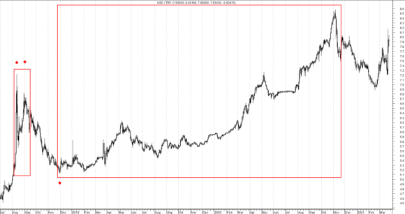Focalizzando l’attenzione sul mero impatto finanziario di tali azioni, la Turchia, nelle ore successive all’annuncio, ha subìto un inevitabile ripercussione sulla propria moneta: vendite generalizzate ne hanno affossato i corsi in una sola giornata il tutto all’insegna di una maggior precarietà e incertezza in ottica futura.