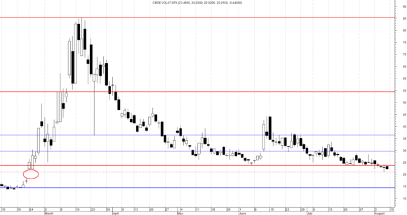 A parziale conferma di un ritrovato sentiment positivo non può essere sottovalutato l’andamento dell’indice Vix: nel corso della settimana “l’indice della paura” ha registrato cinque sedute consecutive negative e la prospettata violazione del supporto a quota 24 è avvenuta con un minimo weekly (20,97) ben oltre il primo target in corrispondenza dei 23 punti. L’attuale impostazione grafica vedrebbe come naturale obiettivo la chiusura del più volte menzionato gap dello scorso febbraio, ma è plausibile che si possa comunque registrare un ritorno oltre i 24,64 punti per successivamente proseguire con l’attuale tendenza ribassista.