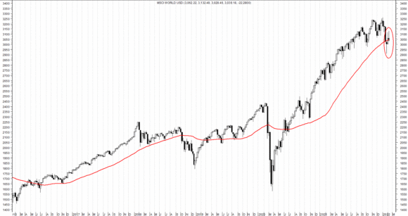 Poiché strettamente correlata, ad affiancare le sorti del Vix, ci viene in aiuto l’analisi grafica del benchmark azionario rappresentato dal consueto MSCI World Usd.