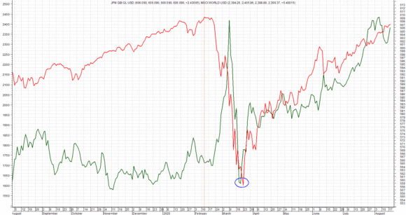 Paradossalmente, la prima forma di investimento ad aver aggiornato i propri record (senza alcuna enfasi da parte dei media) è stato quella maggiormente difensiva: il paniere internazionale dei bond – rappresentato dal benchmark JPM GBI Gl. Usd – nel corso della prima settimana di agosto ha oltrepassato il precedente livello raggiunto a marzo, ossia nel bel mezzo del caos azionario. Per quest’ultimo, e il suo rappresentativo indice MSCI World Usd, l’aggiornamento del proprio record (fatto segnare a febbraio) manca ancora per pochi decimali di punto. Dati alla mano, rispetto ai loro minimi di anno – entrambi i sottostanti – hanno registrato significativi rialzi fino a proiettarsi nuovamente verso livelli di prezzo pre-pandemia.