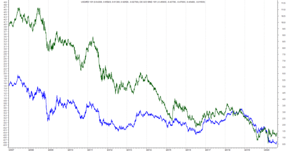 Sia per il breve/medio termine, ma soprattutto per il cosiddetto “lungo periodo”, lo scenario che si presenta appare alquanto problematico. Da un lato, è indubbio come l’attuale livello della curva dei rendimenti (rif. Bund e Treasury Usa) sia ai minimi storici e pertanto i prezzi siano potenzialmente “cari”. Sul versante opposto (ma solo per tipologia di investimento) troviamo una componente azionaria rappresentativa di multipli aziendali inferiori (di molto) rispetto agli attuali corsi.