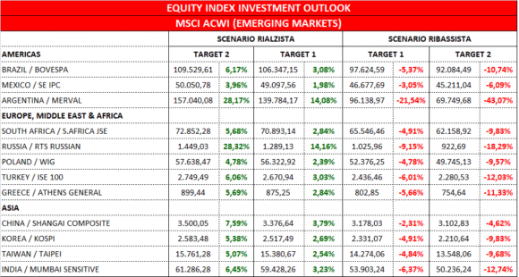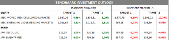 Per l’asset class azionaria, l’indice MSCI World Usd, vede nel brevissimo periodo un immediato approdo a 2.792,22 punti. Qualora dovessimo osservare un suo deciso superamento attraverso una seduta caratterizzata da una rivalutazione daily di oltre l’1,31%, i rispettivi obiettivi rialzisti mensili troverebbero un pressoché certo conseguimento. Unica debolezza strutturale di fondo viene individuata mediante la violazione di area 2.701,33 che, inevitabilmente, comporterebbe una fase di alleggerimento complessivo con obiettivo a 2.570,79 punti.