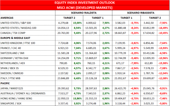 Sui singoli listini, particolare attenzione viene posta sul solo paniere developed market e in particolare sull’area Pacific. Per tutti coloro che fossero interessati a un ingresso sul mercato, l’indice Nikkey 225 potrebbe beneficiare di un significativo impulso rialzista con interessanti ritorni su base monthly.