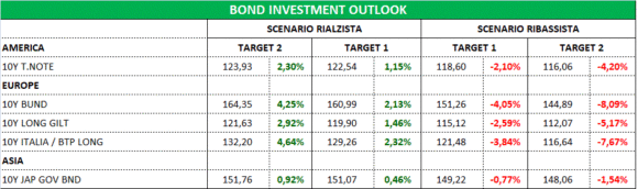 Focalizzando l’analisi sui futures decennali, sia il Bund che il Btp, vedono una prima costruzione ribassista sul loro versante algoritmico in ambito leading indicators. Un’eventuale flessione può essere considerata del tutto fisiologica (tenuto conto della significativa rivalutazione dai minimi) e, pertanto, si rimane in attesa di quest’ultima ipotesi. Solo successivamente si potrà delineare un miglior quadro tecnico ai fini di una profittevole operatività.