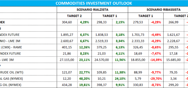 Sulle materie prime inizia a ripresentarsi una negatività di fondo che, già nelle scorse settimane, veniva riportata su queste pagine. Anche se potenzialmente prematuro, individuare – oggi – la realizzazione di nuovi minimi di anno, non appare una dinamica troppo pessimistica.