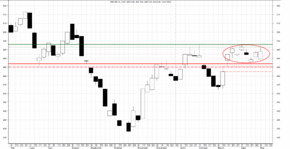 Agli attuali valori, però, possiamo comunque individuare un’ormai prossima direzionalità di brevissimo termine che, beneficiando di un recente consolidamento algoritmico, vede potenzialmente un iniziale trend rialzista con primo obiettivo oltre quota 496,359 punti. Questa ipotesi subirebbe una negazione qualora si dovesse assistere alla violazione di area 489,37 con successiva destinazione in prossimità del trading range negativo delimitato tra i 485,398 e 482,46 punti.