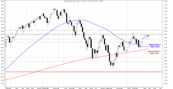 Osservando le quotazioni del benchmark MSCI World Usd, il minimo weekly conseguito ha pressoché raggiunto il secondo livello target mensile (2.747,57) in precedenza indicato. La reazione da parte dei compratori non è mancata e il successivo ritorno oltre l’area di supporto a 2.800,75 punti conferma l’importante valenza di quest’ultima soglia. In ottica settimanale, viene individuata area 2.775 punti quale primario supporto statico che, se nuovamente avvicinato, potrebbe questa volta mancare la propria funzione agevolando un’accentuata discesa dei prezzi ben oltre il sopracitato target mensile. Positivo, invece, il ritorno delle quotazioni oltre quota 2.843,57 punti: se ciò dovesse accadere attraverso una chiusura, registrare nuovi massimi di anno appare uno scenario verosimilmente certo. Rinnovato, inoltre, il suggerimento al costante monitoraggio dell’indice Vix che, in caso di riproposizione oltre i 18,22 punti, vedrebbe un potenziale incremento degli scambi con spinta superiore al livello di soglia 20,08.