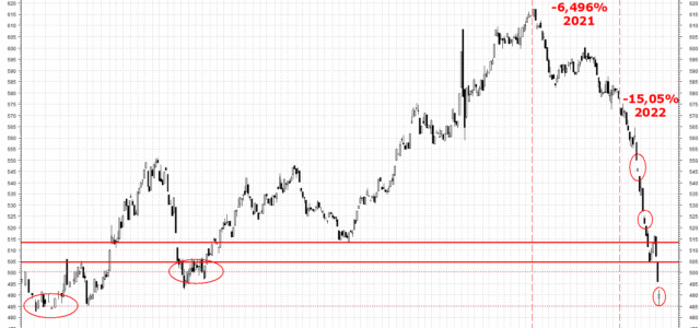 Ora, focalizzando l’attenzione ai possibili scenari conseguenti a quest’ultimo obiettivo, si può individuare soglia 2.434 punti quale primo supporto statico mentre area 2.535 in veste di resistenza dinamica. Solo successivamente al loro conseguimento si potranno delineare i potenziali sviluppi, ma, fin da subito, è doveroso considerare il raggiungimento della sopracitata media mobile come un importante e significativo alert anticipatorio a una prolungata fase di debolezza sui listini azionari internazionali.
