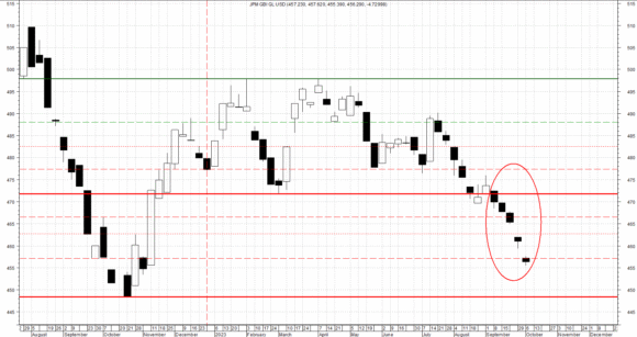 Attualmente, l’intero impianto tecnico/algoritmico evidenzia uno stato di accentuato sell signal che, se contestualizzato alle prossime azioni di politica monetaria, potrebbe coincidere con il raggiungimento del supporto statico di lungo periodo posto a quota 448,29 punti. Senza creare inutili allarmismi, questa ipotesi appare verosimilmente concreta poiché sostenuta (ex ante) da due potenziali aspetti (tecnico e macroeconomico), entrambi in corso di sviluppo. Certamente, osservando alle dinamiche settimanali, i recenti gap down suggeriscono una plausibile futura chiusura, ma, allo stesso modo, è opportuno rilevare come tale opzione possa (al momento) passare in secondo pianto rispetto al più rilevante obiettivo grafico ipotizzato (rif. supporto statico a 448,29 punti).