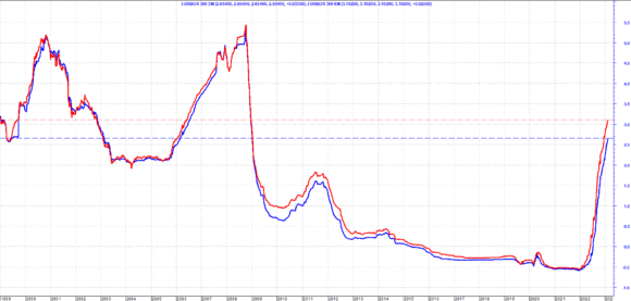 Oggi, però, senza nulla togliere a nessuno, l’importanza attribuibile allo spread è assai relativa. Avere un differenziale che muta con il trascorrere delle giornate non identifica il vero problema poiché, essendo una mera sottrazione tra i valori di rendimento tra due elementi (titoli decennali italiani e tedeschi), il risultato finale non rappresenta l’effettivo quantum del contendere. Avere uno spread a 200 punti con rendimenti di poco superiore all’1% è decisamente meno problematico rispetto ad avere i medesimi 200 punti, ma con soglie di rendimento oltre il 4% (ovviamente in capo all’Italia).