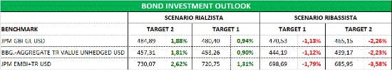 Ad accompagnare l’effettiva debolezza azionaria si aggiunge la contrapposta asset class obbligazionaria. Il consueto benchmark JPM GBI Gl. Usd ha registrato nuovi minimi di anno e, complice l’incertezza in sede di politica monetaria, l’attuale livello dei prezzi pone qualche interrogativo sull’effettiva bontà di un posizionamento nel brevissimo termine.