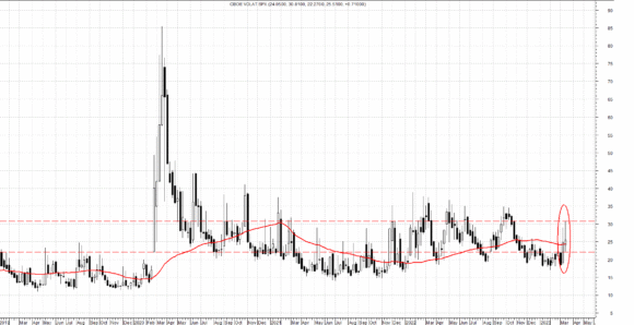A quantificare l’incertezza e pertanto il rischio sull’asset class azionaria giunge il consueto monitoraggio dell’indice Vix, che nella trascorsa ottava ha visto aggiornare i propri massimi di periodo portandosi oltre i 30 punti.