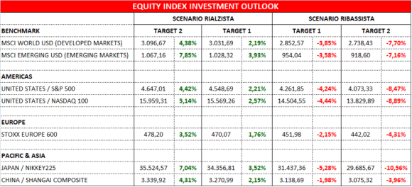 Guardando ai listini azionari ed alle loro impostazioni grafiche mensili, il comparto europeo rappresentato dall’indice Stoxx 600 appare il più penalizzato finora e, pertanto, in caso di un eventuale ulteriore allungo dell’asset class equity potrebbe beneficiare di un potenziale ritorno da parte dei compratori. Viceversa, in presenza di ribassi, suggeriamo il monitoraggio del supporto in area 450,50 punti quale punto di ingresso in chiave long di brevissimo termine. Oltreoceano, invece, al primario indice S&P 500 viene preferita ancora una volta la componente high tech (rif. Nasdaq 100), mentre, nell’area “Pacific & Asia” sul nipponico indice Nikkey 225 ci si attende un rallentamento (fisiologico) rispetto alla recente accentuata crescita.