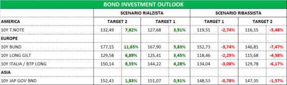 Sul versante valutario si attendono maggiori elementi per i principali cross da noi osservati: anche per questa “asset class” – al momento – viene suggerito il monitoraggio (e l’eventuale rispetto) dei target mensili individuati.