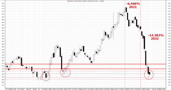 Gli attuali valori riportano al 2017 e, beneficiando di un quadro più lineare in materia di politica monetaria (sia in capo alla Fed che alla Bce), i rendimenti YTM (yield to maturity) sulla componente governativa internazionale appaiono allettanti per tutti coloro che, avendo privilegiato la componente cash all’investimento, oggi possono beneficiare di maggiori ritorni in funzione di una duration più contenuta (v. parte breve della curva in Usd). Pertanto, in sede di allocazione strategica, viene individuata la resistenza statica a quota 497,96 punti quale limite massimo al fine di poter effettuare il primo acquisto (1/3 della posizione ideale) e con successivo ingresso (altro terzo) non oltre i 500 punti.