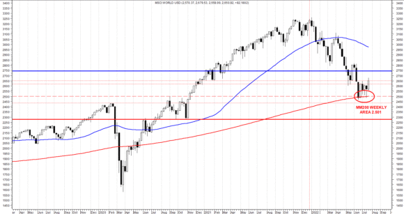 Monitorando il recente andamento si può rilevare “una certezza” da quanto rappresentato con il supporto coincidente alla media mobile a 200 osservazioni settimanali. Sicuramente, la sua valenza (ora in transito in area 2.501 punti) identifica una soglia che lo stesso mercato ha già testato più volte e, in caso di violazione, gli stessi operatori potrebbero utilizzare come riferimento per dar vita a un vero e proprio sell off generalizzato (con target a 2.277,67 punti) sull’intera asset class equity. Nel brevissimo termine, invece, viene circoscritto a soglia 2.747,14 il primo obiettivo in chiave rialzista: solo un ripiegamento dei prezzi al di sotto di quota 2.569,5 punti comprometterebbe quest’ultimo scenario favorendo la possibile capitolazione in direzione della sopracitata media mobile.