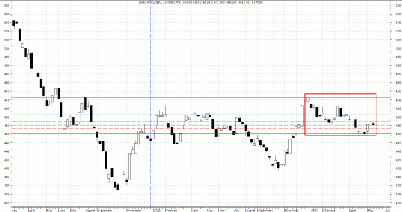 Le quotazioni (attualmente a 455,24 punti) hanno concluso nel range da noi precedentemente individuato tra i 453,30 e 456,75 punti e, a seguito di questo iniziale assunto (rif. condizione di «almeno due ottave»), potremmo auspicare un nuovo ingresso (long) nell’arco di queste giornate. Pertanto, la nostra view rialzista conferma l’impostazione di un buy signal con limite di prezzo fino a quota 453,30 punti che, solamente un brusco downside inferiore a soglia 449,85 punti, negherebbe la bontà dell’intera strategia posizionale. Operativamente, a supporto di quanto illustrato, suggeriamo il costante monitoraggio del future sul decennale Usa che, in caso di superamento di area 109,35, vivrebbe di un nuovo stimolo rialzista con target in direzione di quota 110 punti.