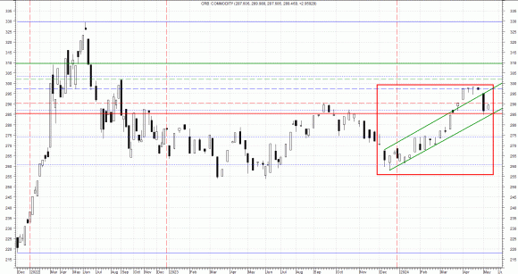 Buona reazione delle materie prime (rif. CRB Index) che, rilanciandosi dai recenti minimi (284,742 punti), si sono prontamente riposizionate a ridosso dell’importante soglia dei 290,29 punti (area di prezzo favorevole a un segnale neutrale in sede algoritmica). Pur mancando di poco quest’ultimo livello (massimo weekly a 289,989), alcuni leading indicators hanno comunque mutato il loro status che, seppure non completato, potrebbe concretizzarsi in un anticipato buy signal post allungo oltre i 290 punti.