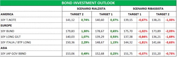 Rimane immutato il nostro sentiment (negativo) sul decennale tedesco che, nonostante il proprio upside sul finire di settimana, non soddisfa soprattutto sul piano algoritmico: anche nel corso della trascorsa ottava si sono registrate ulteriori divergenze su alcuni oscillatori che potrebbero precludere una fase rialzista maggiormente robusta rispetto al trading range attualmente violato.