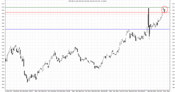 È possibile individuare alcune soglie di potenziale inversione rispetto al trend rialzista in corso, contrassegnato da una volatilità superiore alla media