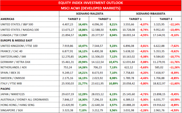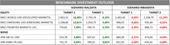 A causa di questo scenario viene ancora confermata una logica attendista in ottica di investimenti a maggior rischio (rif. equity): per coloro che, volessero comunque acquistare (ritenendo a sconto gli attuali corsi), è sicuramente preferibile un ingresso frazionato sul principale benchmark azionario internazionale (rif. MSCI World Usd) escludendo, di fatto, le singole piazze borsistiche.