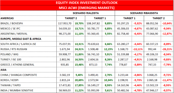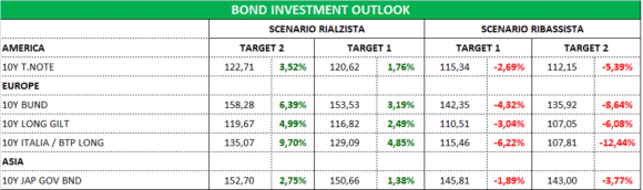 Attualmente, anche sul versante quantitativo, gli obiettivi concernenti le asset class e i loro sottostanti evidenziano rapporti rischio/rendimento attesi caratterizzati da ampi valori: generalmente, in occasione di questi riscontri, è opportuno astenersi dall’operatività poiché oggetto di maggiori errori dettati dall’elevata volatilità dei corsi.