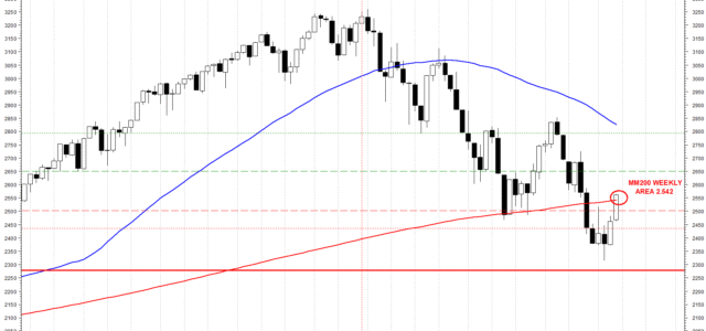 L’indice MSCI World Usd ha registrato un’ottima performance weekly (+4%) e, alle attuali quotazioni, vede gravitare le proprie quotazioni al di sopra dell’importante soglia psicologica rappresentata dal transito (area 2.542) della media mobile a 200 osservazioni settimanali: qualora nel corso della prima seduta si dovesse concretizzare una chiusura superiore a quota 2.558,99 punti è plausibile assistere a una veloce accelerazione rialzista con primo target a 2.650,42; successivamente, e non è utopico annunciarlo fin da ora, potremmo ipotizzare la costruzione di un importante setup che, se confermato con il trascorrere delle prossime giornate, vedrebbe un ulteriore spinta fino a soglia 2.825,85 punti ovvero l’area di transito della media mobile a 50 (rif. weekly). Unica possibile nota negativa è, invece, l’assistere a un ribasso delle quotazioni con livelli di prezzo inferiore a 2.501,79 punti con un obiettivo corrispondente a 2.435,73.