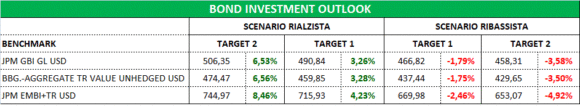 A causa di tale incognita, l’asset class bond sarà certamente oggetto di una maggiore volatilità soprattutto in ottica di brevissimo termine con l’ovvia e diretta conseguenza sull’effettivo andamento (e incremento) dei rendimenti finali. Pertanto, particolare attenzione alle future quotazioni del JPM GBI Gl. Usd che, qualora dovesse ritracciare in prossimità di area 466,82 punti, vedrebbe un pressoché certo aggiornamento dei livelli minimi dello scorso anno.