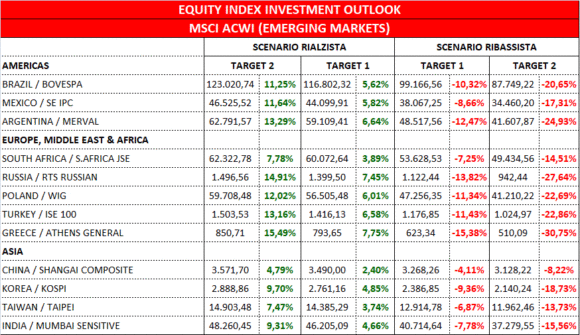 Discorso diverso sul fronte “Emerging” che, dopo aver già visto la componente “Asia” registrare ottime performance nel corso di questi ultimi mesi, ora potrebbe nuovamente continuare la corsa, ma limitando il rally (in chiusura di anno) al primo obiettivo rialzista mensile.