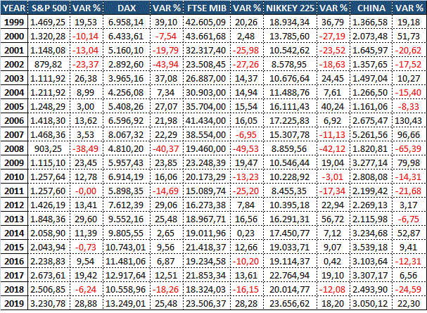 Parallelamente all’andamento economico, riteniamo possa essere interessante affiancare anche quello finanziario ovvero quanto accadeva sulle piazze borsistiche dei singoli Paesi.