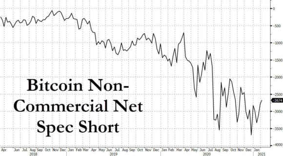 C’è aria di short squeeze 2.0? Con la sua mossa su Bitcoin, Elon Musk punta a questo. E lo fa alla luce di questo altro grafico, il quale mostra come contemporaneamente stiano salendo anche le posizioni net short sulla criptovaluta.