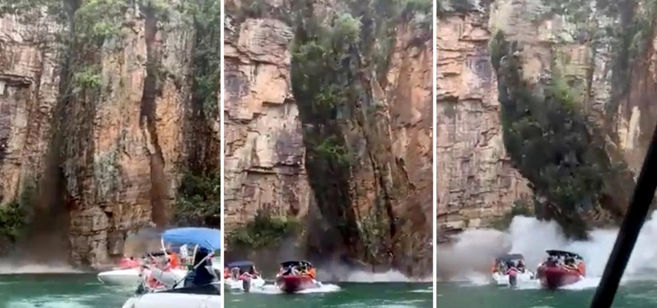 Un grosso frammento di scogliera si è staccato oggi dalla sua parete, cadendo su tre barche che stavano navigando sul lago di Furnas, in Brasile, famoso per le sue acque verdi e proprio per le sue pareti rocciose. Proprio perché si tratta di un lago frequentato molto da turisti, ci sono le immagini del disastro, a dir poco agghiaccianti. Riprendono, infatti, l’esatto momento in cui un pezzo di roccia si stacca e travolge sicuramente una barca, quella su cui c’erano i passeggeri che sono morti. Il bilancio si è stabilizzato a 10 morte: sono appunto le persone che erano sulla barca colpita dagli scogli.