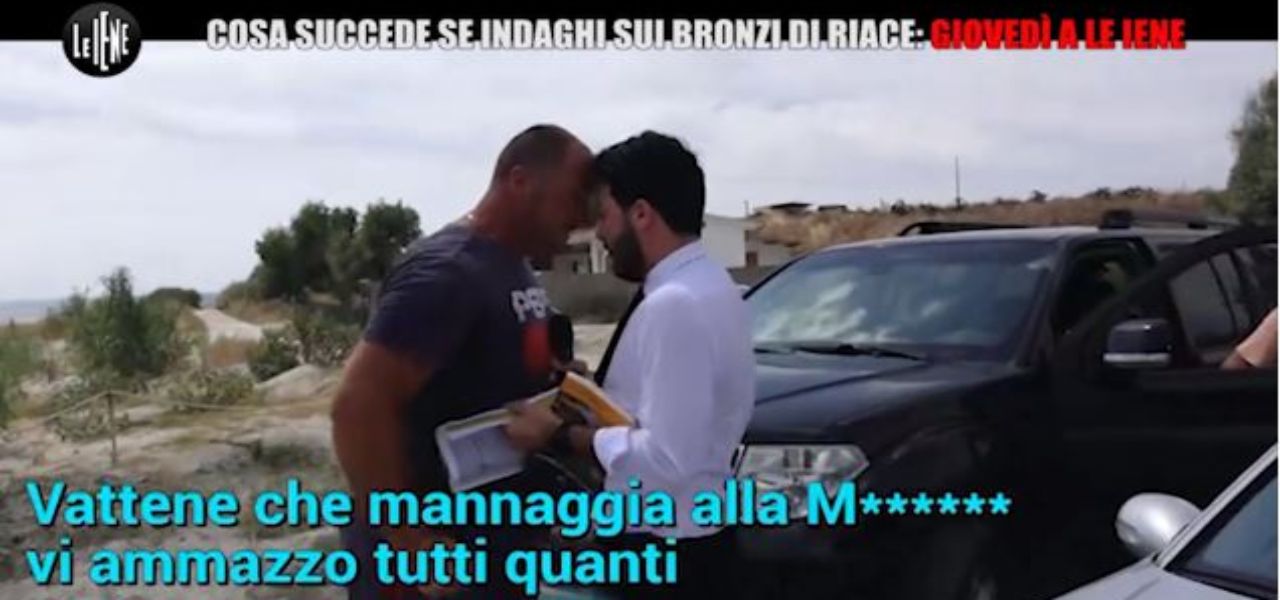 BRONZI DI RIACE, VIDEO AGGRESSIONE A LE IENE: “VI AMMAZZO TUTTI”