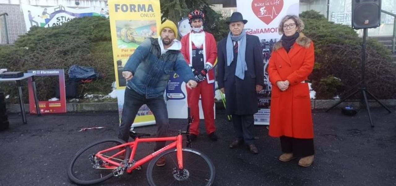 Una “pedalata” per raccogliere fondi a Natale per i bambini dell’Ospedale Regina Margherita di Torino, con un testimonial d’eccezione: Vittorio Brumotti, campione di Bike Trial e inviato di “Striscia La Notizia”, ha presenziato alla camminata e pedalata con oltre 1000 persone a Torino organizzata dalla Fondazione FORMA (Fondazione Ospedale Regina Margherita).