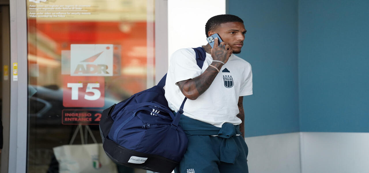Michael Folorunsho durante il rientro degli Azzurri all'aeroporto di Fiumicino dopo l'eliminazione dagli Europei, Fiumicino (Roma), 30 giugno 2024. ANSA/TELENEWS