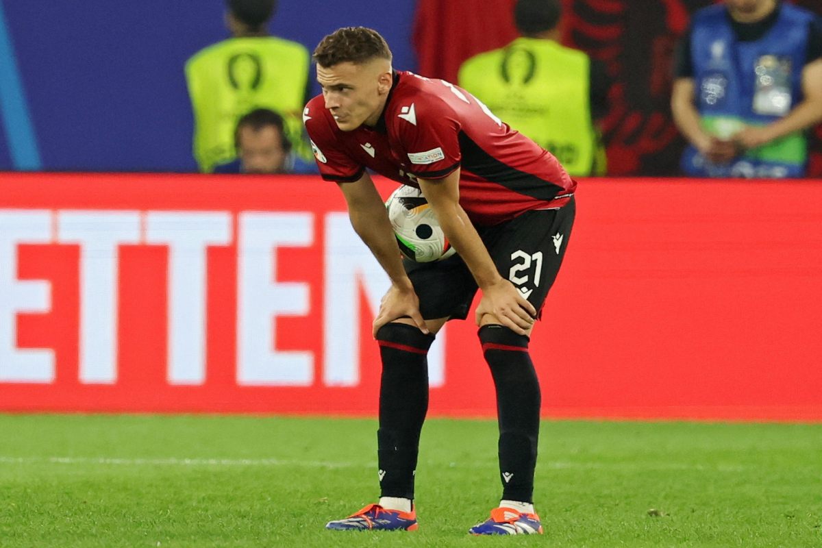 Kristjan Asllani in campo con la Nazionale albanese (Foto Ansa)