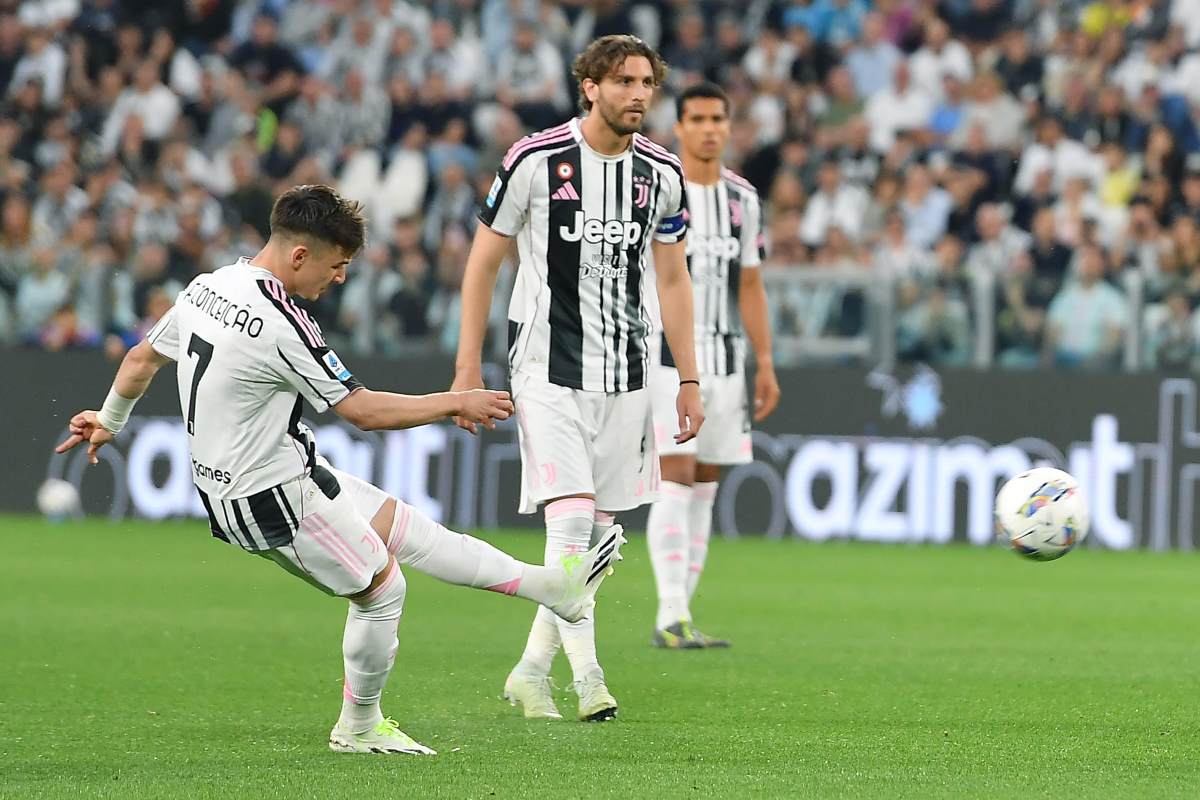 Francisco Conceiçao calcia una punizione con la Juventus (Foto ANSA)
