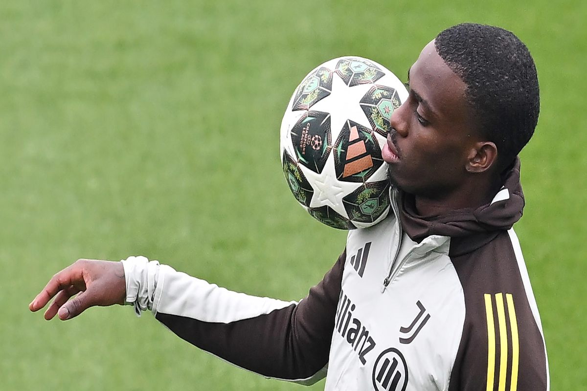 Timothy Weah in allenamento con la Juventus prima della Champions League (Foto Ansa)