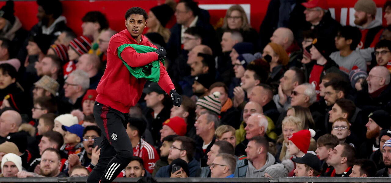 Marcus Rashford si riscalda con il Manchester United (Foto ANSA)
