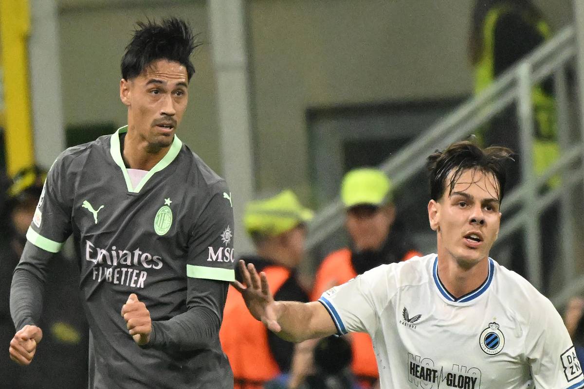Reijnders lotta con Jashari in Milan-Club Brugge di Champions League (Foto Ansa)
