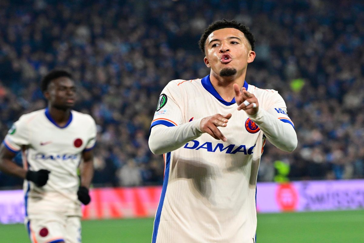 Sancho esulta in Conference League col Chelsea (Foto Ansa)