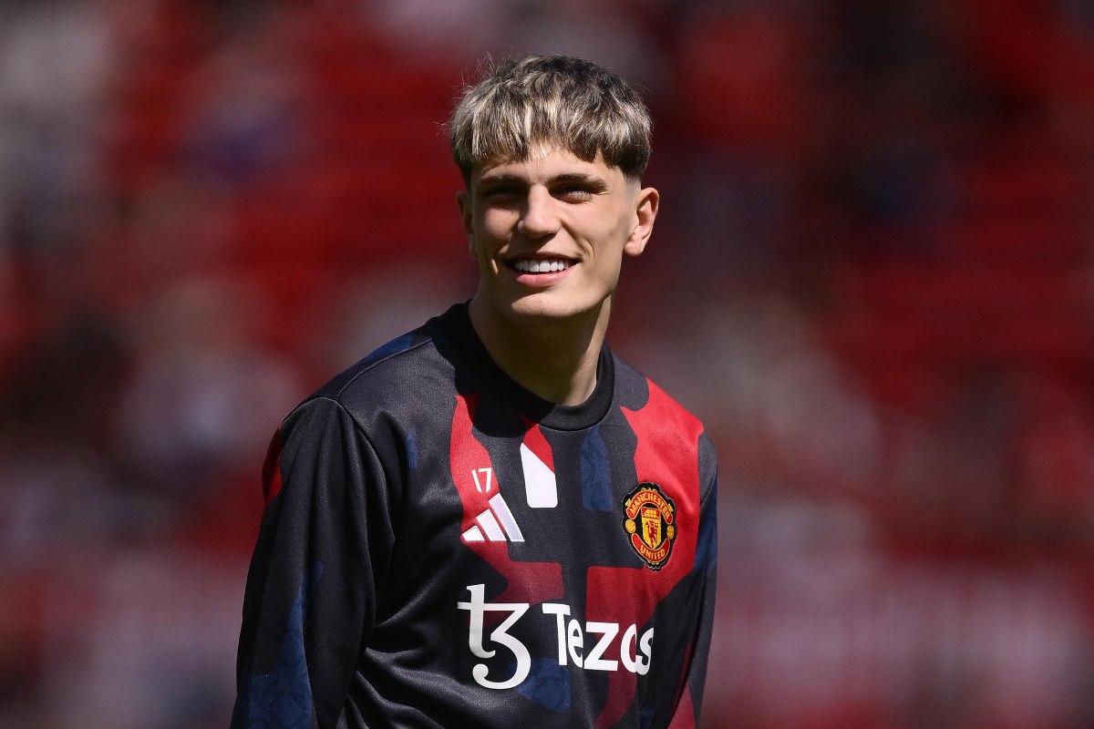 Alejandro Garnacho in riscaldamento col Manchester United (Foto Ansa)
