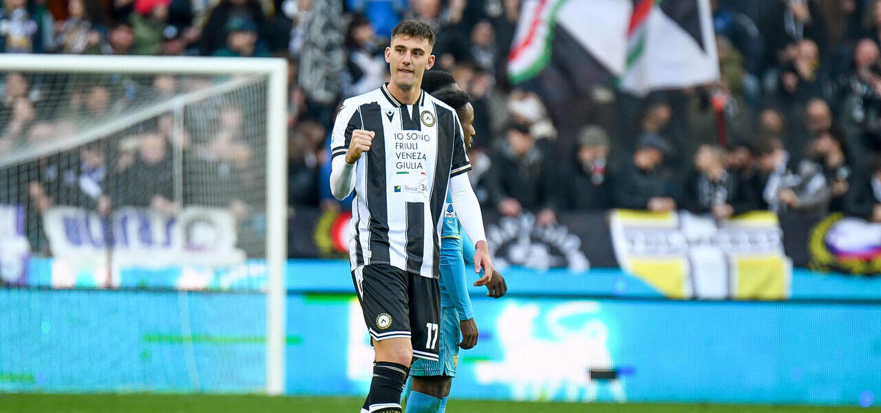 Lorenzo Lucca esulta con l'Udinese (Foto ANSA)